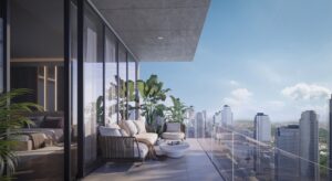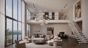 Duplex penthouses on top floors with expansive layouts.